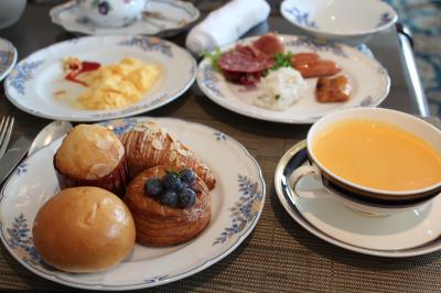 朝ご飯。パンは何種類かあってどれも美味しかったです。特にクロワッサンが...