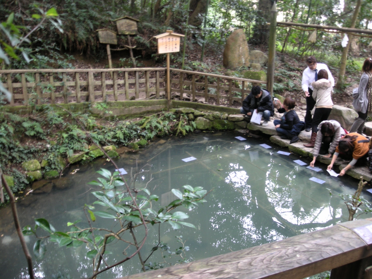 社務所で1枚100円で購入して神社の奥の鏡の池へ・・・