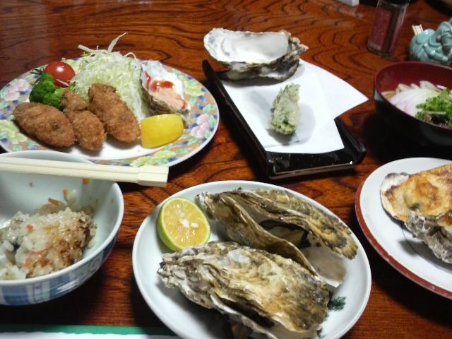 ここの民宿では牡蠣だけを使った牡蠣会席を出してもらえます。