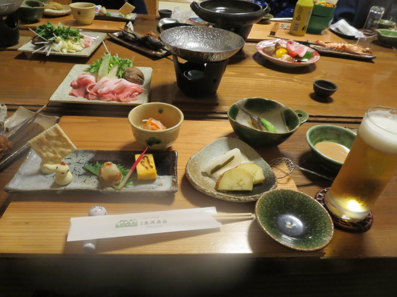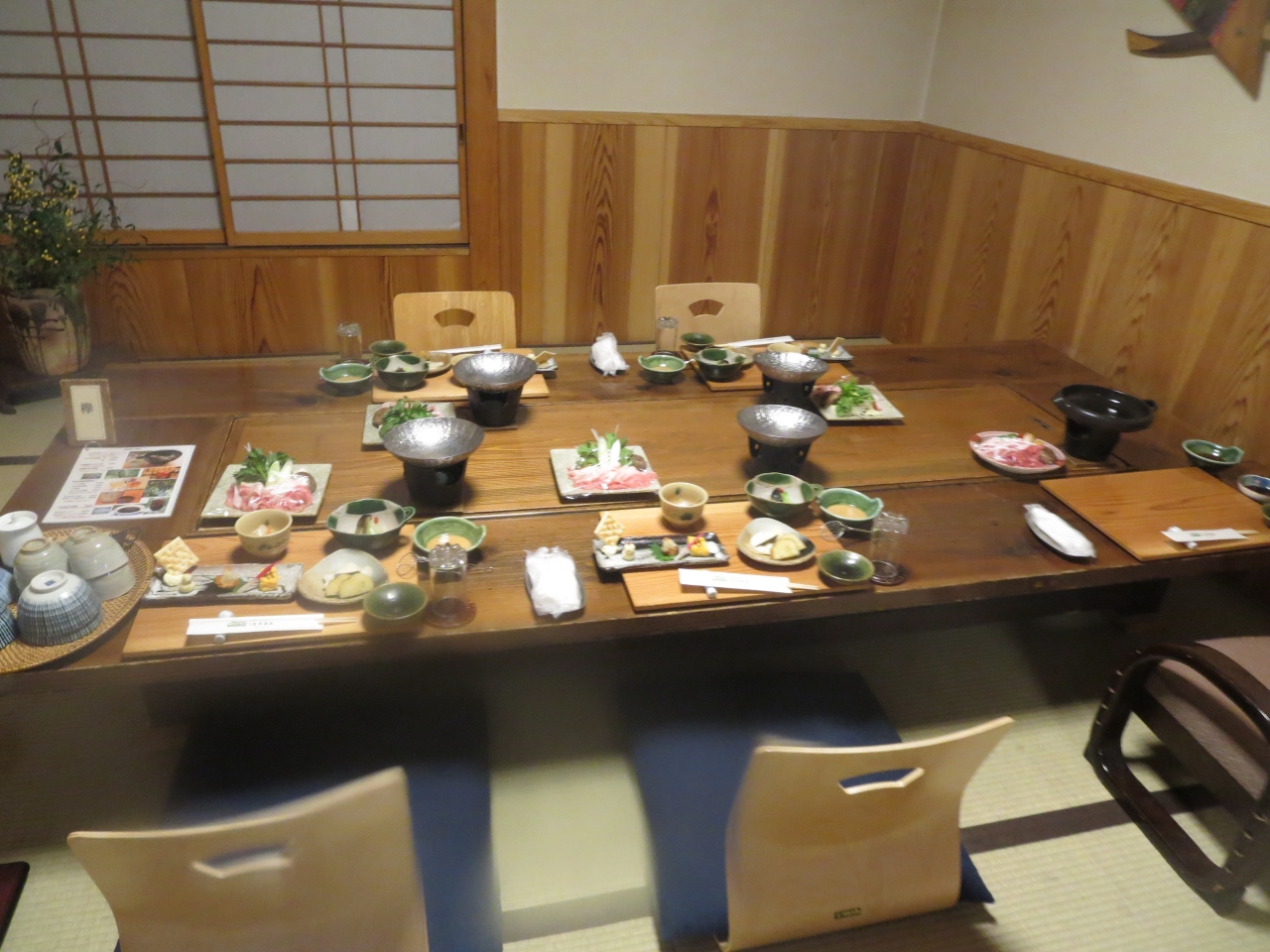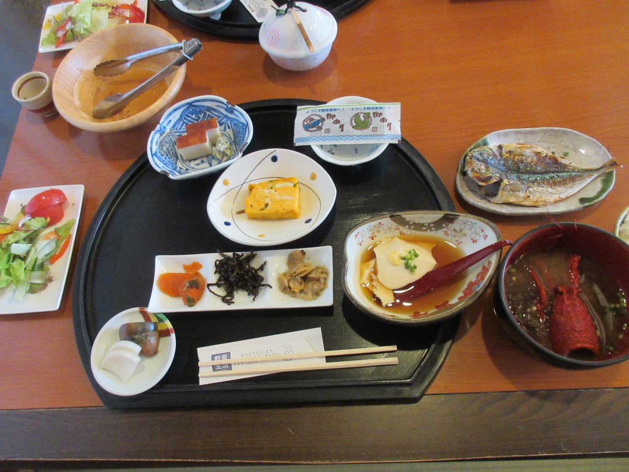 食事は、食事処でゆっくり地元の食材を使った料理を堪能しました。