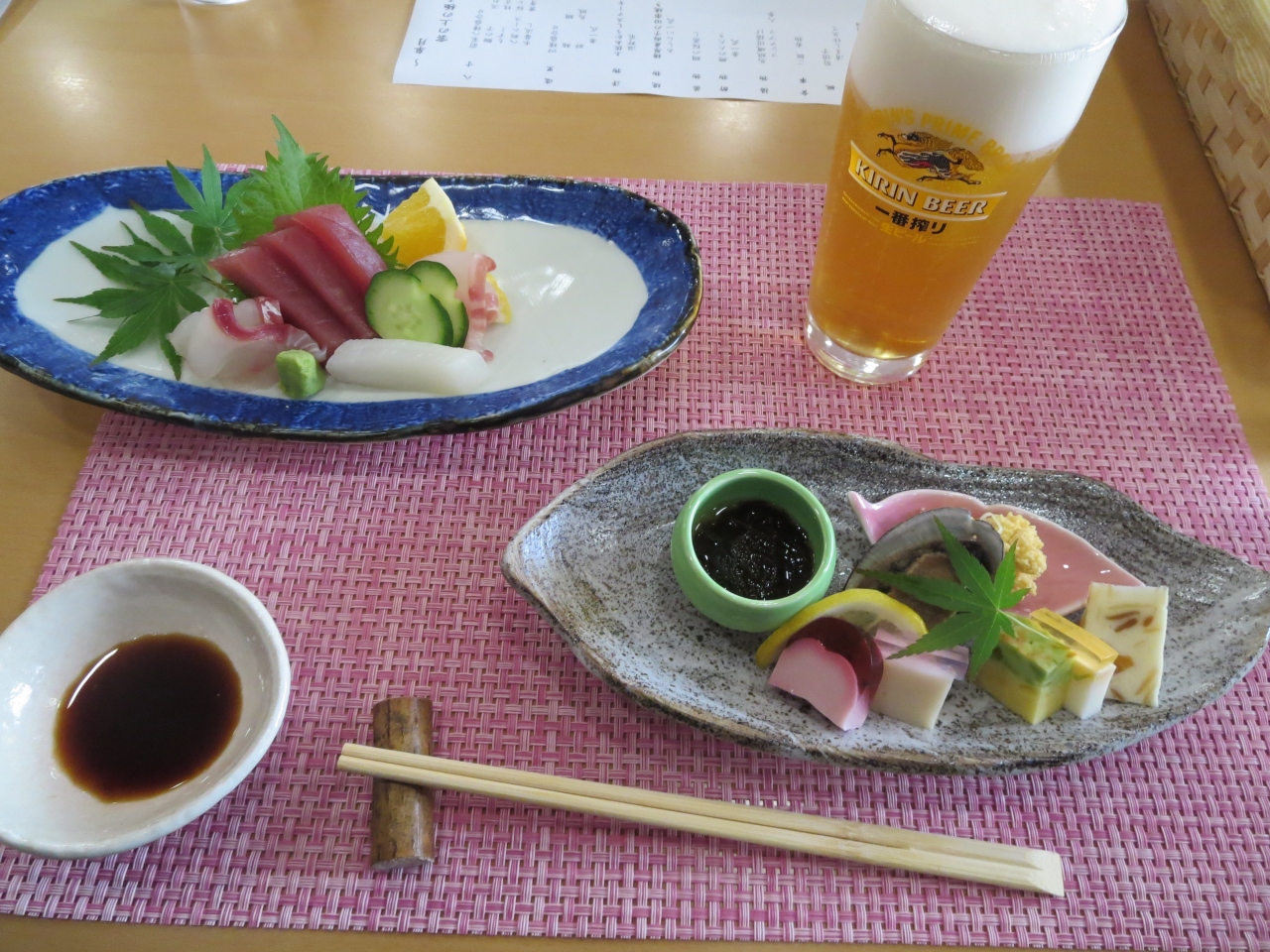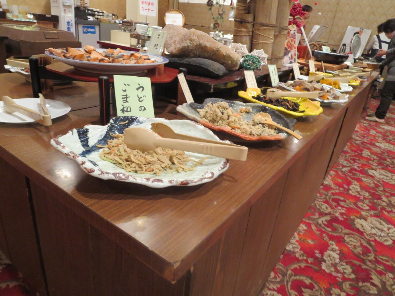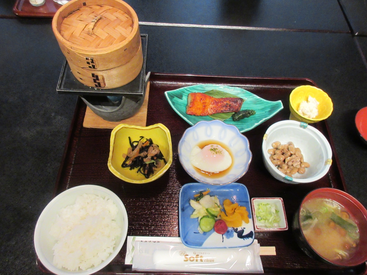 食事は、食事処でゆっくり地元の食材を使った料理を堪能しました。