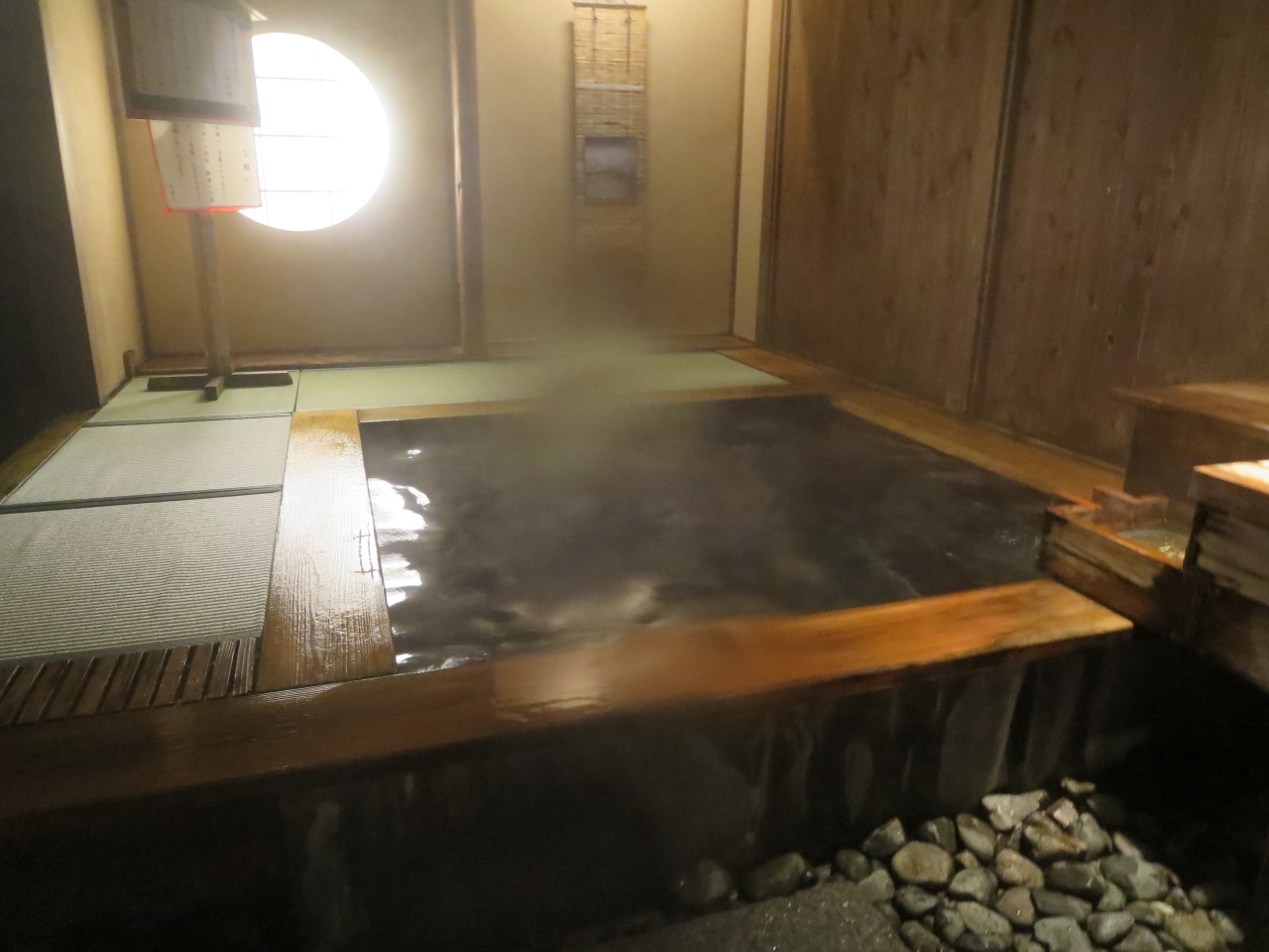 この貸切風呂は、自家源泉100%で温泉がとっても濃いです。当日の予約制ですが、夜10時以降は空いていればいつでも入れます。早朝にゆっくり入りました。食事も食べきれないほどの量がでてきます。