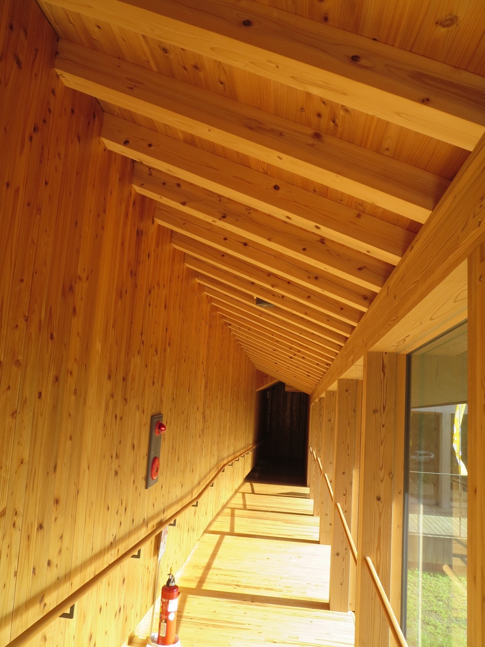 高知から車で約1時間30分 山の中に突如とあらわれる雲の上のホテルは、隈研吾の建築で光の取り入れ方がとても素敵でした。一番感動したのは温泉へ行く回廊が光に包まれていてとても綺麗でした。