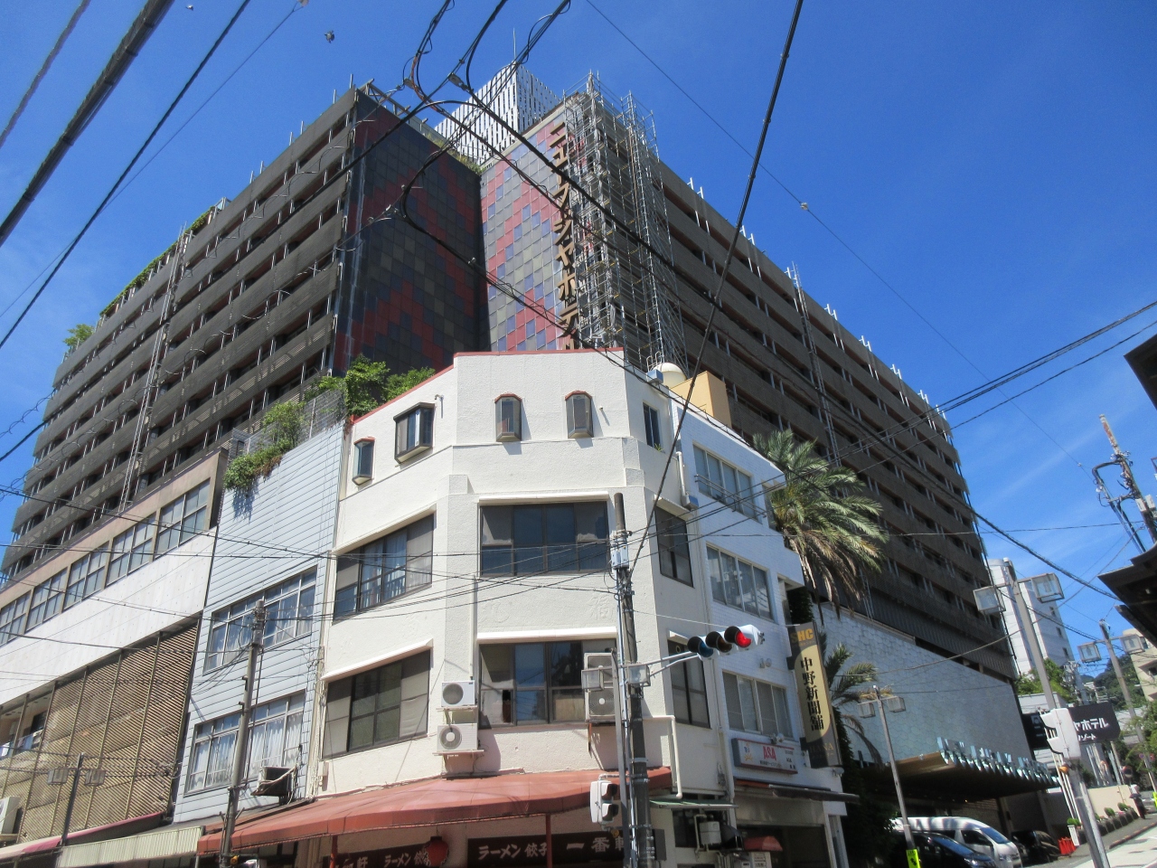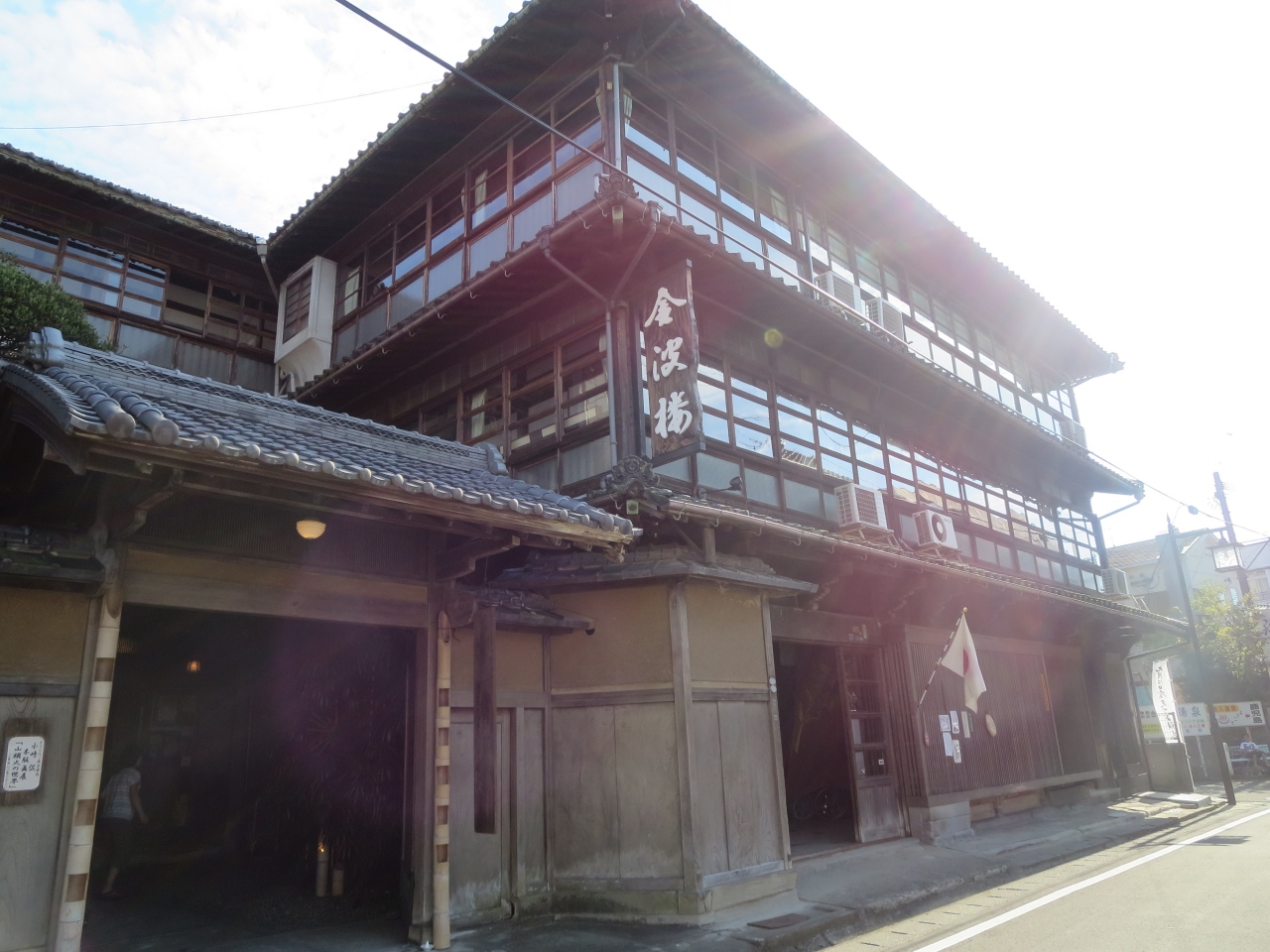 日奈久温泉駅から徒歩15分くらいの場所に温泉街があります。金波楼はひときわ目をひく旅館です。