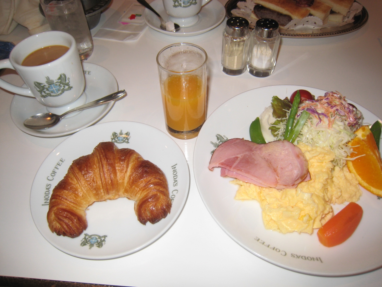 朝食は、レストランで頂きます。リンゴジュースとコーヒーはおかわり自由です。