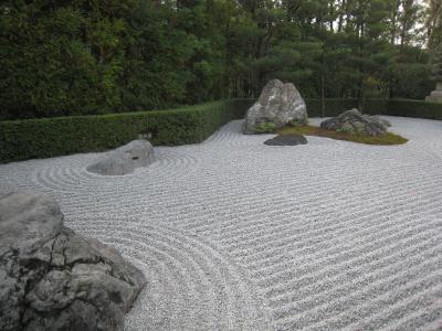 入口には陰陽の石庭、史跡名勝枯山水 元信の庭、余香苑