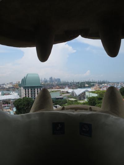 中に入ることのできるマーライオン。頭の上と口の中からセントーサ島を眺めることができます。口の中はかなり狭いので混雑しているときついです。頭の上は外に出られるので気持ちはいいですが、私が行った時はセントーサ島内の工事が一面に見えて景色はイマイチでした。