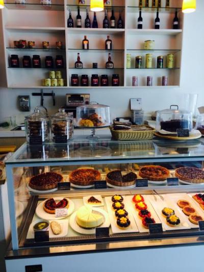ショーケースには美味しそうなタルトやケーキが並んでいました。