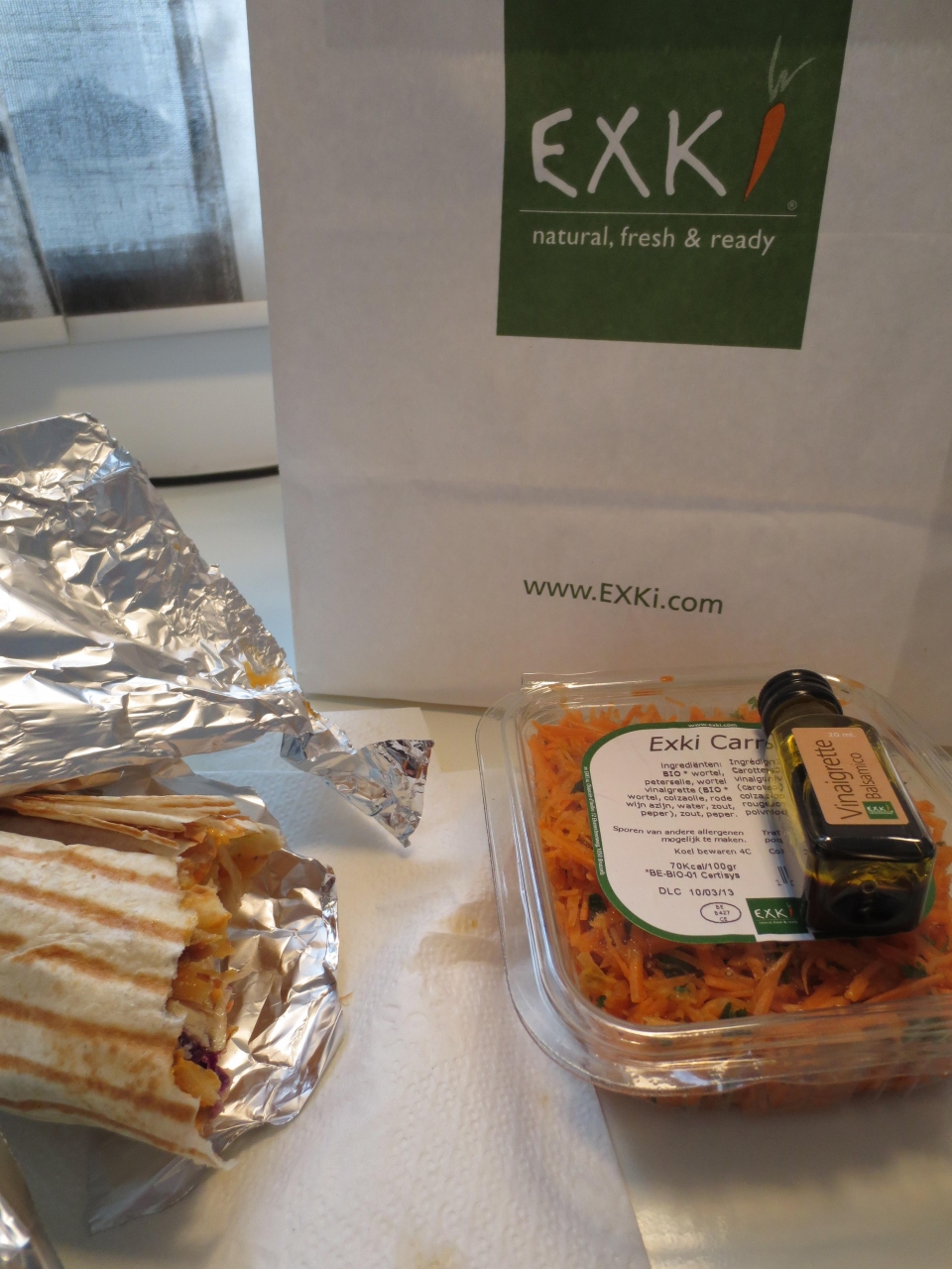 私は人参サラダとチキンラップを持ち帰りました。味は、可もなく不可のなく、です。- 旅行時期