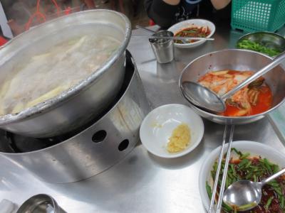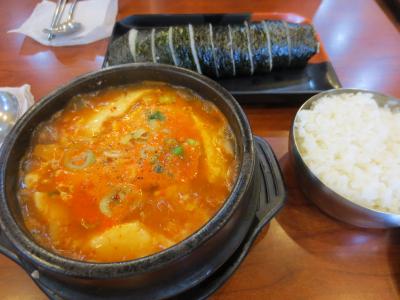 キンパはもちろん、チゲやククス、トッポギなどひととり韓国料理が揃っているので使い勝手のいいお店です。ふたりでチゲ×2、キンパ、キンパ持ち帰り×2で15,000ウォンでした。- 旅行時期