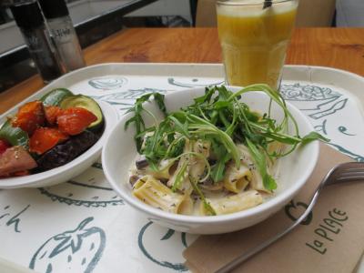野菜たっぷりのヘルシーな料理が並ぶお店です。店内で食べることも持ち帰りも可です。朝食や昼食、お腹が空いていない時のご飯にいいと思います。