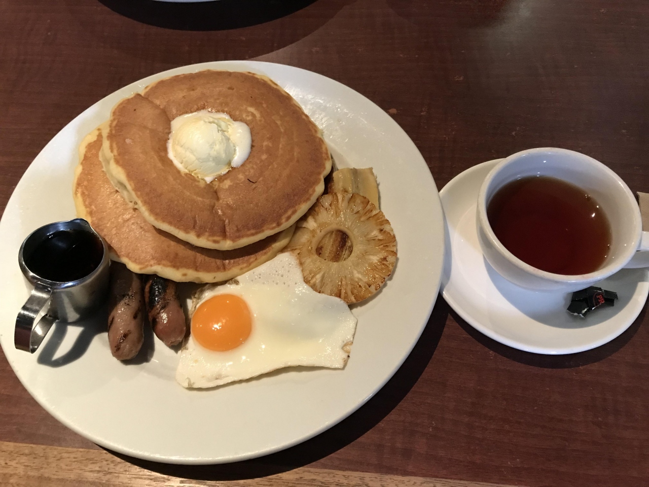 パンケーキにソーセージや目玉焼きが付いていたり、エッグベネディクト付きだったり、色々モーニングメニューがありました。