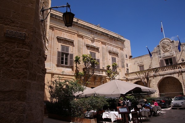 古都イムディーナの城壁内にあり、古い建物を使った趣深いホテルです。ルレ・エ・シャトーに加盟しているだけあって、ウェルカムドリンクに白ワインをポテチと一緒に出してくれたり、館内がどこも落ち着いた素敵なインテリアだったり、優雅な滞在ができます。でもお手頃価格なので、プールやスパなどの施設もありませんし、ものすごく豪華とか贅沢感があるという感じでもありません。