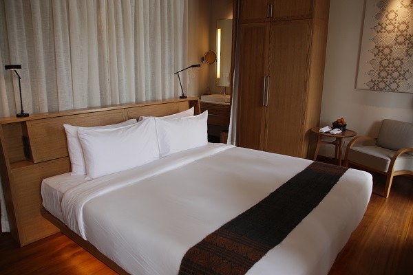 スクンビットの駅から徒歩5分程度の便利な場所にあり、比較的新しくスタイリッシュなホテルです。部屋も十分ゆとりのある広さで、ガラスで仕切られたバスルームも機能的。アメニティがC.O.ビゲロウズだったのがセンスあるなと思いました。朝食ビュッフェは十分な種類がそろっていて、麺料理もつくってくれます。申し分なく快適に過ごせました。