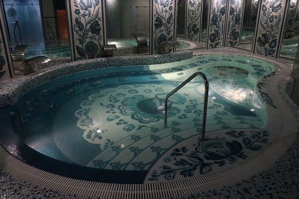 スパにあるジャクジーはマトリョーシカの絵が描かれたタイル貼り。かわいすぎるので必見です。