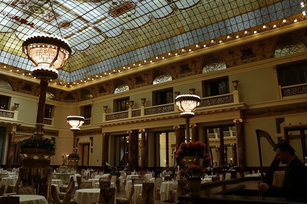 その期待どおり、広いロビーには明るい光が降り注ぎ、お部屋もロマンチックなインテリアで、レストランはタペストリーがたくさん飾られ、どこをとっても素敵な空間。