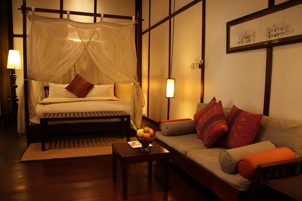 建物とマッチしたクラシックな家具やラオスらしいファブリックが使われていて雰囲気を楽しめました。