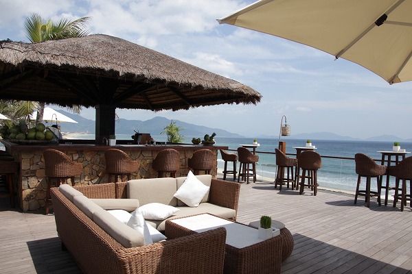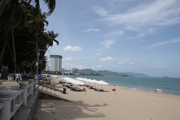 ニャチャンの空港から送迎車(有料)で15分ほど。市街地のニャチャンセンターとの間は無料送迎があり、ホテル発が12:00、17:30の2便、ニャチャンセンター発が13:00、18:30、21:30の3便ありました。