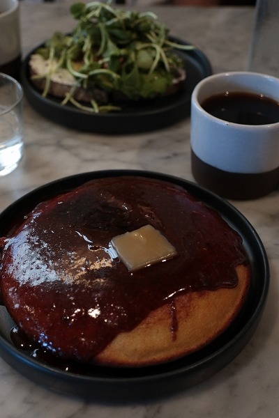 こちらの名物メニューはモルテッドパンケーキ。分厚いパンケーキにクルミの茶色いコクのあるソースがかかっていて、思ったほど甘くもなく、ふんわりしておいしかったです。- 旅行時期