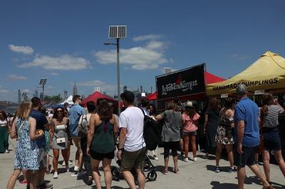 対岸のマンハッタンの景色を眺めながら、話題の屋台グルメを食べ歩くことができます。お腹いっぱいでもドリンクもあるし、雰囲気を味わうだけでも楽しいスポットです。- 旅行時期