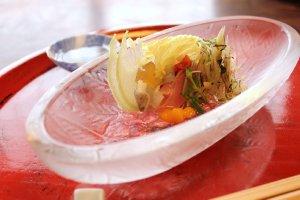アワビも入ったお刺身盛り合わせ、サザエのツボ焼き、お魚(名前忘れてしまいました)とタマネギの煮物など、、、どれもおいしかった!