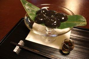 黒みつをかけると一層引き立つわらび粉のやさしい甘みと、ジャリッ×モチッ×ツルッとした食感は、他のどこでも食べたことのないスペシャルなわらび餅です。