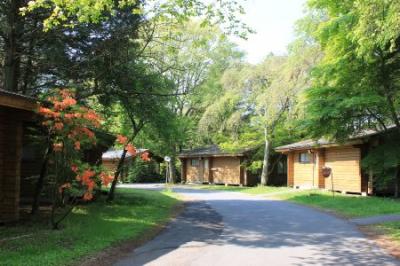 緑の中にコテージが点在していて、別荘気分を味わえます。