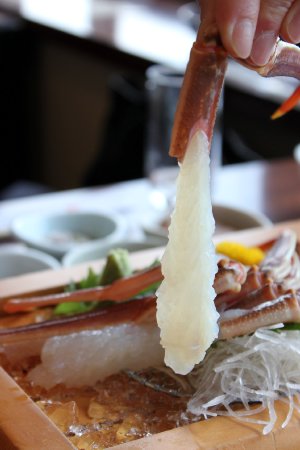 というわけで、選んだカニを、半分はお刺身、半分は焼きガニにしていただきました。