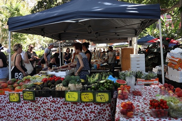 メトロのKing Cross駅から5分ほど歩いたフィッツロイ・ガーデンで毎週土曜日に開催されています。野菜、果物、はちみつ、お花などを売るストールのほか、その場で食べられるフード類もありました。テイクアウトして芝生でくつろぐ人たちもいて、のんびりとした休日を過ごせます。