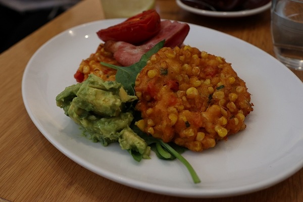 リコッタバナナパンケーキはふわふわでおいしかったです。世界一というのは大げさだと思いますが。むしろコーンフリッターのアボカドサルサのほうが気に入りました。