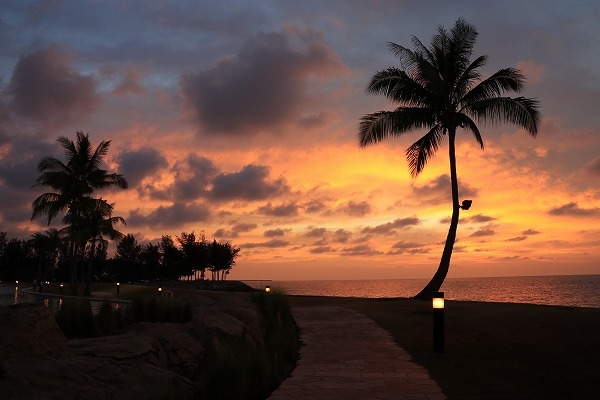 敷地の真ん中にはやたらと大きなプールがあり、左右にはビーチもあります。このホテルは夕日が有名で、プールの前の小高い丘にはところどころベンチが配され、ゆったり夕日を鑑賞できます。頼めばバギーでゴルフクラブや映画館などの敷地内施設をぐるっとまわってくれます。