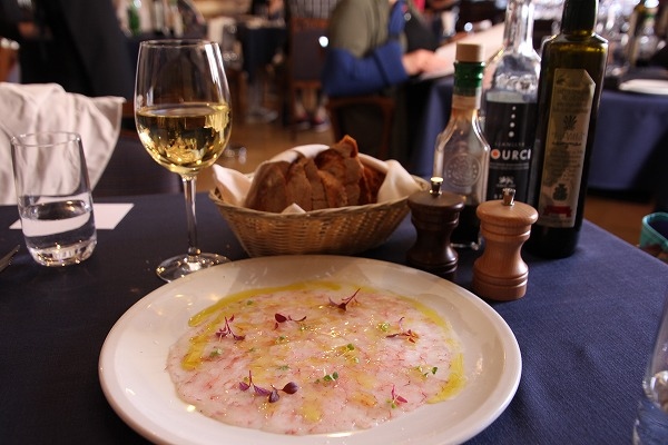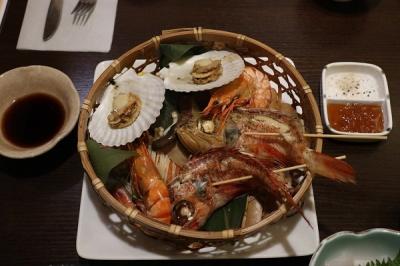 夕食はいろいろな種類を少しずつというスタイルで、お食事自体はそれほど特筆すべきものではありませんでしたが、ブリの解体ショーをやっていて演出を楽しめました。