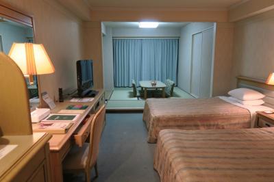 いちばんベーシックなオリエンタルツインのお部屋でしたが、ツインベッドのほかに和室がついているのがくつろげてうれしかったです。浴室はコンパクトなユニットバスタイプだったのが少し残念。