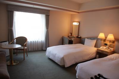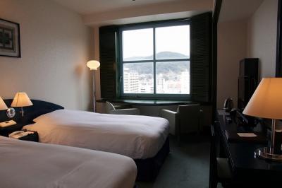 お部屋タイプおまかせの朝食付きプランで宿泊しました。おそらくいちばんスタンダードなお部屋で、ツインベッドに机、そして窓際に備え付けの半円状のテーブルとソファ。