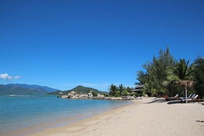 ニャチャンの市街地から離れたところにあり、市街地の北の端あたりから30分かかって専用ピアに到着。ここからスピードボートに乗って15分。桟橋を渡ると、やっとリゾートの敷地に入ります。空港送迎は有料で予約可能、ニャチャン市街からだと自分でタクシーで行くことになります。あらかじめピアの場所を教えてもらっておくといいです。