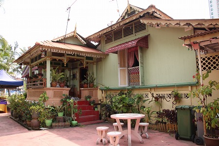 伝統的な高床式のマレー様式の家が並ぶエリアで、ヴィラ・セントーサ以外にも目を引く素敵な建物がいくつかありました。民宿を経営しているところが多いようです。