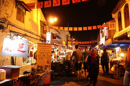 食べ物や雑貨を売る屋台がずらっと並び、正直これといって買うようなものはあまりないのですが、日中暑いマラッカでは少し涼しくなった夜にそぞろ歩くにはこのようなマーケットは楽しめるもので、思っていた以上に人出も多く賑わっていました。