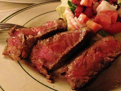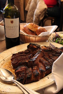 ポーターハウスステーキは、舌でとろけて溶けてなくなるのが高級とされる和牛とはまったく違うジャンルの、赤身の部分の味が濃く凝縮されていて歯ごたえもしっかり、そして脂がコクとまろやかさを与えている、これぞNYステーキ。この確かな肉の存在感、焼き具合、歯ごたえ、舌触り、香り、、、うまく描写できないけど、NYステーキのNo.1の座に君臨し続けていることが納得できるステーキです。