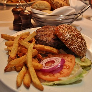 ハンバーガーは、粗挽き肉を使っていますが、さすがは高級ステーキ店だけあって、そんじょそこらのハンバーガーとは格が違います。