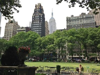 中央の芝生のまわりにはテーブルとイスがたくさん並べられていて、エンパイアステートビルディングも望めて、市民の憩いの場となっています。