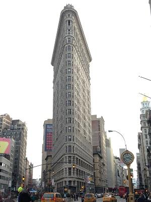鋭角に交差する通りの角に、その形に合わせて建っている三角形のフラットアイアンビル。ニューヨークで最も古い建物のひとつで、当時としては高層ビルだったそうです。