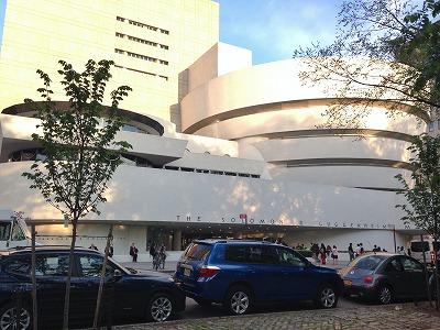 フランク・ロイド・ライト設計のカタツムリ形のデザインが有名です。大きな螺旋状のスロープになっていて、階段を上らなくても歩いて行くと自然と上の階に進んでいくつくりとなっています。