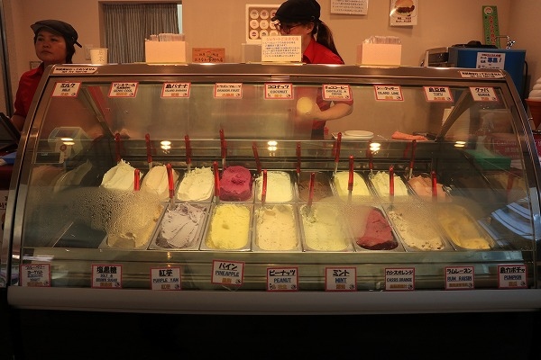 空港内にあるので、スキマ時間のおやつにぴったり。シークワーサーとグアバのダブルのジェラートをいただきました。他にも島豆腐、紅イモ、ドラゴンフルーツ、島バナナなど、南国らしいフレーバーのジェラートがそろっています。