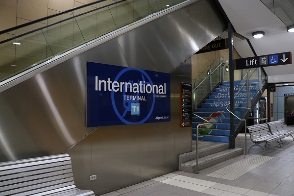 シドニー空港のいいところは何といっても市街地に近いこと。空港の到着ロビーに出て、エアポートリンクのサインに従って進めば迷うことなくこの駅にたどり着きます。