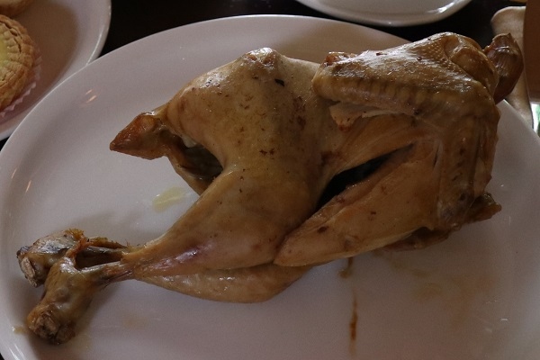 丸一羽なので鶏の形そのまま。岩塩をまぶして紙で包んで焼いているらしいのですが、昆布みかんのような、磯っぽいような香りが強かったです。モモの部分は肉質がしっとりしているし、コリッとした砂肝までついていて、食べごたえは十分。この独特の香りが好みを分ける気がします。私はそこまでハマりませんでした。- 旅行時期