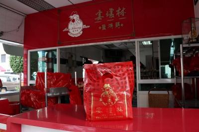 赤い看板が目立つ、テイクアウト専門のソルトチキンの有名店。少し見ているうちにも何人か買って行ったので、やはり人気店のようです。