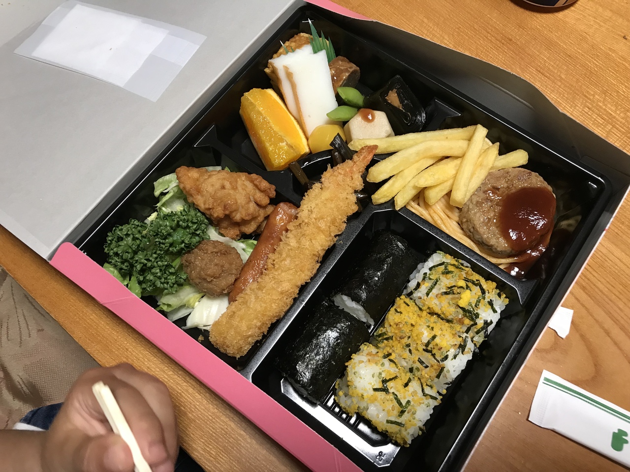 夕食はお弁当、朝食込みのプランで宿泊しました。お弁当は正直期待してなかったですが、地元の食材も使われていて美味しかったです。子どもたちもボリューム満点で喜んでました。カップの味噌汁もつきました。