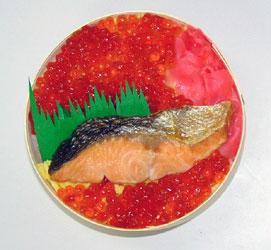 このお弁当はとっても美味しくコストパフォーマンスの良いお弁当です。北海道産の天然秋乃鮭を一枚ずつこんがり丁寧に焼き、特製醤油に漬けた自慢のいくらをたっぷり盛り付けた鮭の親子弁当です。