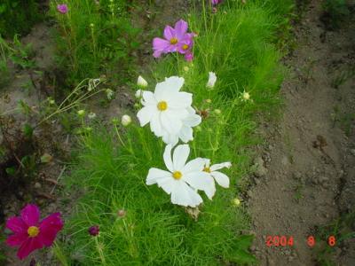 狭い敷地にいろいろあります。白いたんぽぽみたいのがあり珍しく写真撮りました。