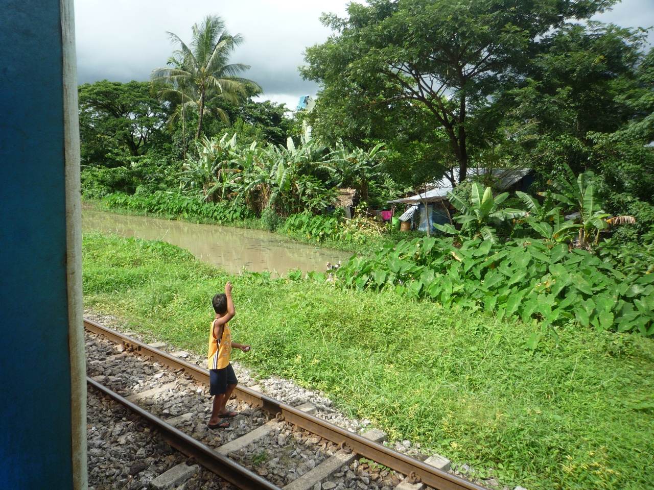 私は目的地があったわけではなく、往復別々の車両に乗り周遊するのに使いました。行きはミャンマー製かな?の古い車両で、座席も鉄製?何製というのでしょうか、公園の滑り台の材質で、窓もなく普通に手が出せます。走行中もドアが開いており適当なところから地元の人たちは乗ってきてるのかなあ、と思いました笑。ドアが開いているので足を外に出す形で踊り場に座ってみたり、窓から顔を出してみたり、日本ではできないような電車の乗り方ができます。なんせゆっくりなので危ないとは思いませんでした。